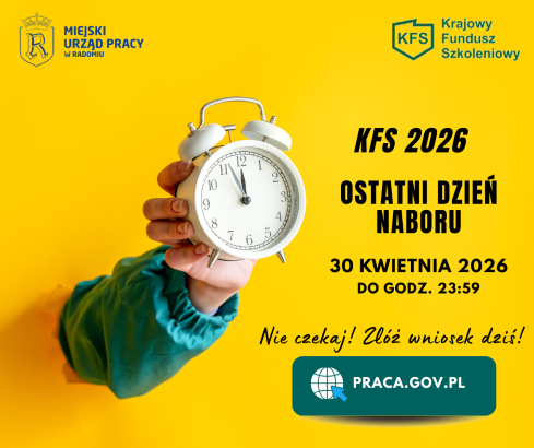 Przypominamy, że 30 kwietnia 2026 r. jest ostatnim dniem naboru wniosków o przyznanie środków z Krajowego Funduszu Szkoleniowego (KFS). Wnioski można składać do...